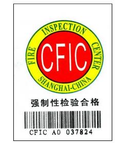 3、消防員滅火防護(hù)服作為強(qiáng)制檢驗產(chǎn)品,應(yīng)在產(chǎn)品上加施強(qiáng)檢標(biāo)志,應(yīng)在每件消防員滅火防護(hù)服舒適層標(biāo)簽旁縫制一個強(qiáng)檢標(biāo)志,分體式的尚需在防護(hù)褲子舒適層褲袋處縫制一個相同的標(biāo)志,如圖所示,尺寸應(yīng)為60mm×90mm。同時,將一件新的消防員滅火防護(hù)服,平鋪在桌面上,打開拉鏈,在防護(hù)服的內(nèi)側(cè)即舒適層上查看是否有國家消防裝備質(zhì)量監(jiān)督檢驗中心的批檢標(biāo)志,并記錄下批檢號,從檢驗中心網(wǎng)站上查詢該生產(chǎn)企業(yè)的批檢合格號碼的范圍,確認(rèn)其真實性。