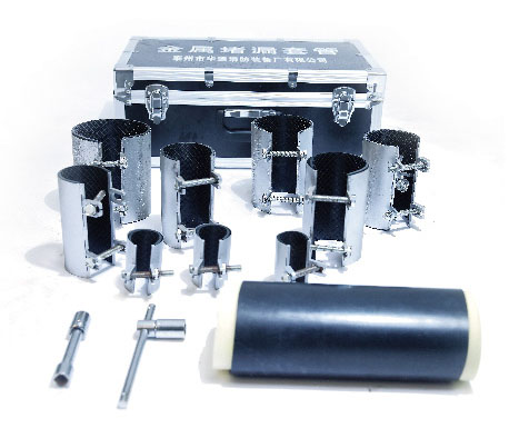 ·金屬堵漏套管主要用于各種金屬管道的孔、洞、裂縫的密封堵漏。外部由金屬鑄件制成,內(nèi)嵌具有化學(xué)耐抗性的橡膠密封套。
