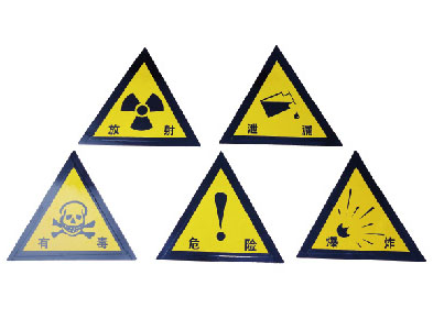 ·用于災(zāi)害事故現(xiàn)場警戒警示,每套由有毒、易燃、泄漏、焊炸、危險等五種標(biāo)志牌組成,圖案為反