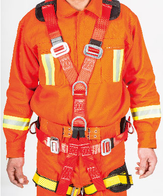 ·設(shè)計(jì)負(fù)荷為2.6KN,固定于腰部、大腿或臀部以下部位,適用于對(duì)他人進(jìn)行救援。II型消防安全帶由織帶、腰帶帶扣和腿帶帶扣和拉環(huán)等零部件構(gòu)成,為坐式安全吊帶。
