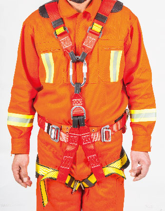·設(shè)計負荷為2.6KN,固定于腰部、大腿或臀部以下部位和上身肩部、胸部等部位,可適用于對他人進行救援,可以為分體或連體結(jié)構(gòu)。III型消防安全帶由織帶、前部拉環(huán)、后背拉環(huán)、后背襯墊和帶扣等零部件構(gòu)成,為全身式安全吊帶。