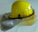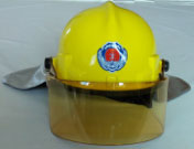 1、黃色外翻半盔式頭盔,由帽殼、緩沖層、網(wǎng)狀舒適層、佩戴裝置、面罩、披肩等組成,采用橡膠內嵌金屬包邊,可安裝照明燈。